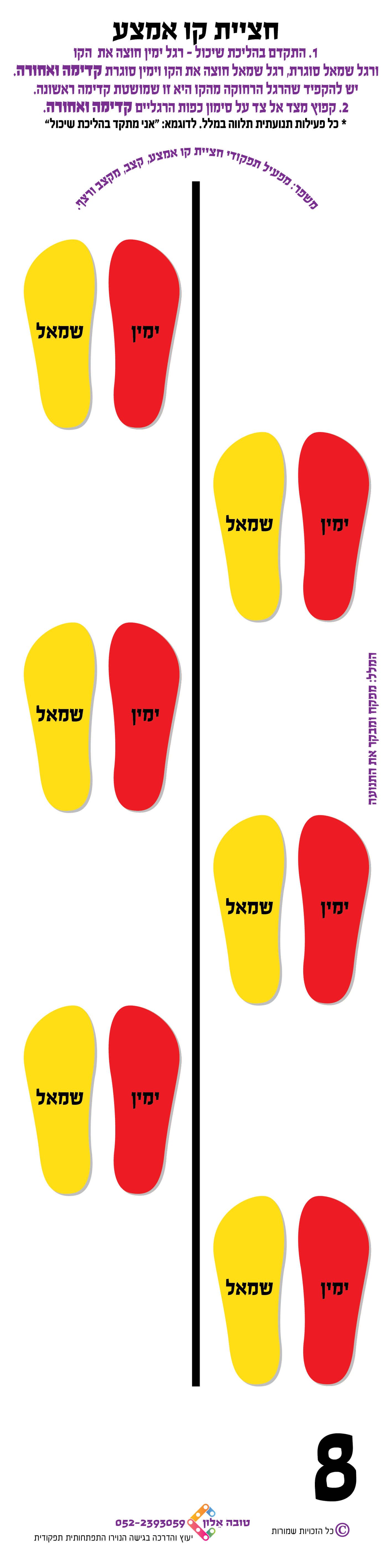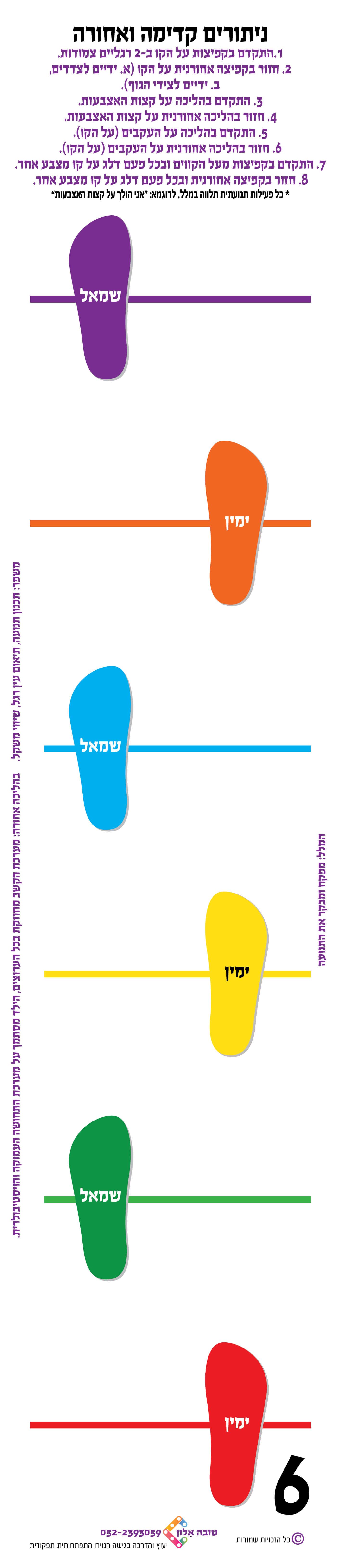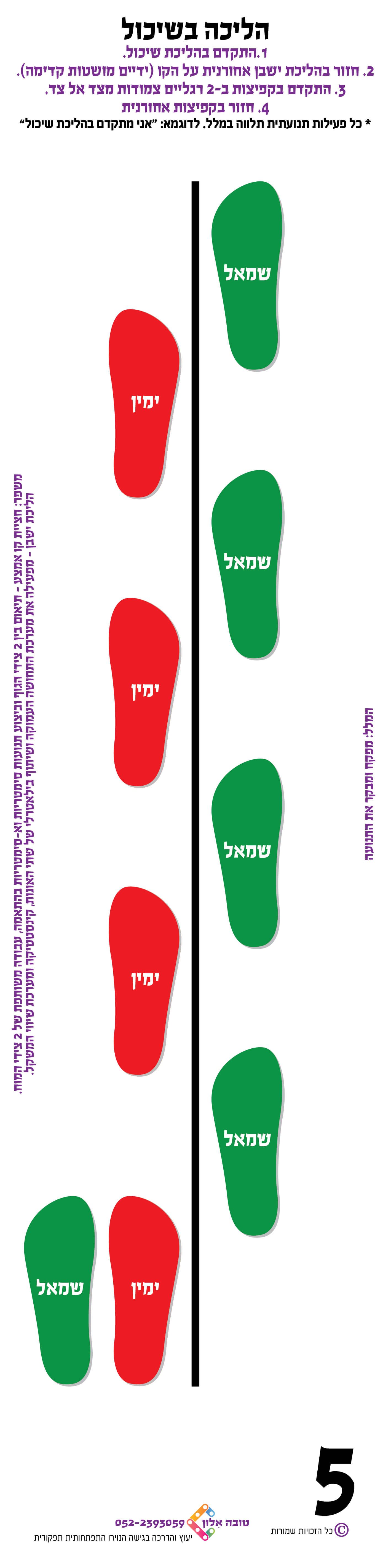 הליכת ישבן – מפעילה את מערכת התחושה העמוקה ושיתוף בילאטרלי של שתי האונות, קינסטטיקה ומערכת שיווי המשקל.