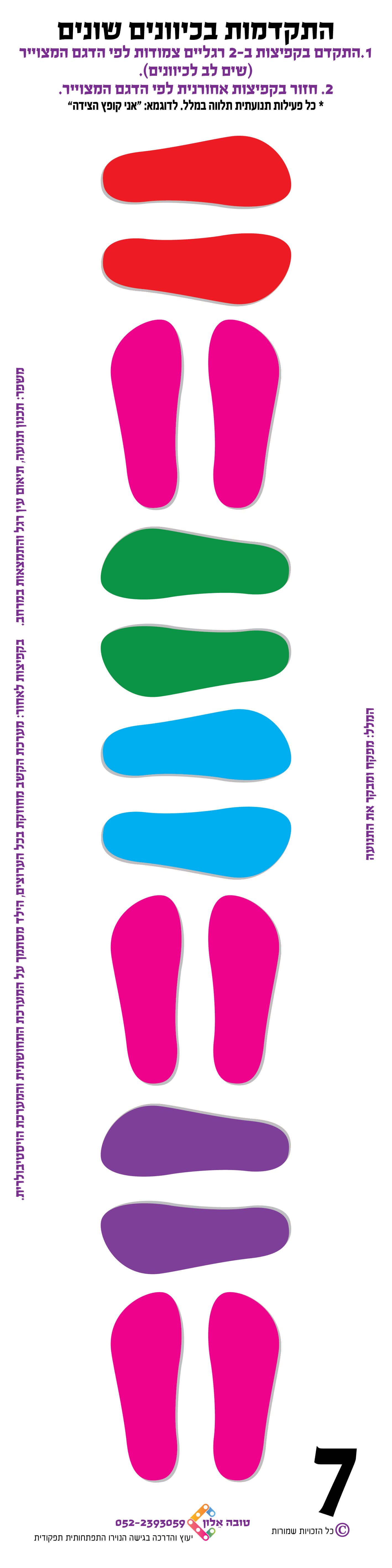 כדאי להדביק מדבקה על יד אחת. הילד יתקדם לפי כיוון המדבקה.